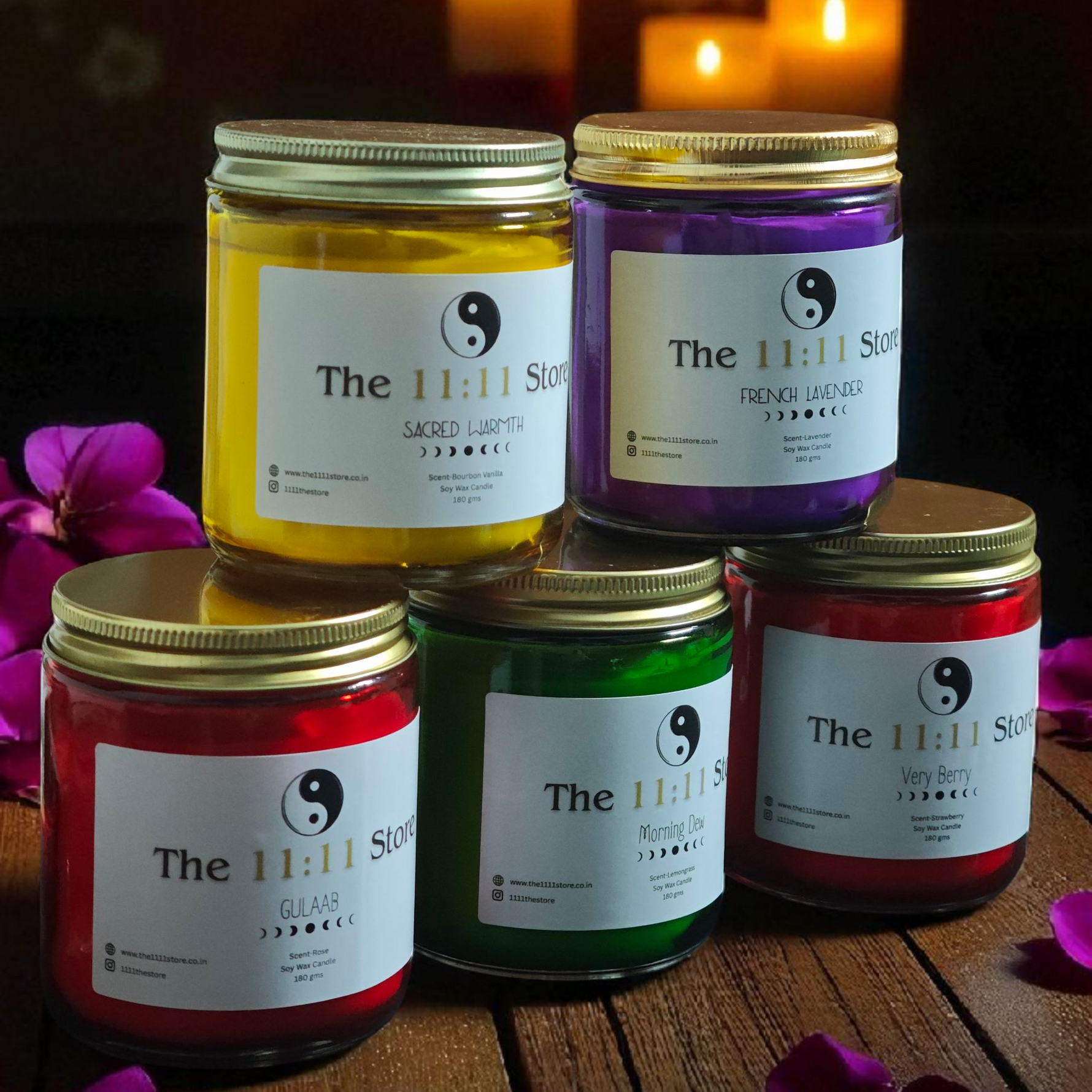 Each candle is hand-poured with love, crafted from natural soy wax,pure essential oils and infused with intention. They are not just fragrances, but sacred tools — created to transform spaces into sanctuaries, just as The 11:11 Store was born to be a space of healing, beauty, and light.
